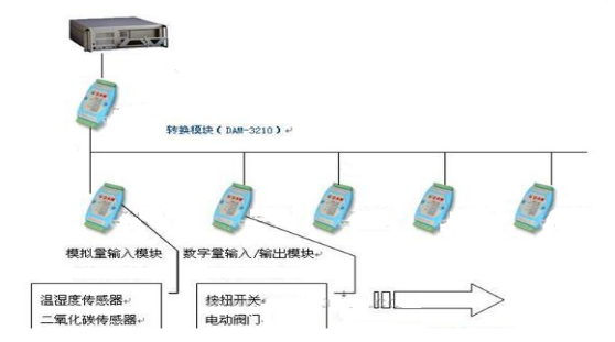 這些均通過阿爾泰DAM系列485模塊實(shí)現(xiàn)測(cè)量和控制,信號(hào)通過485通信協(xié)議線路直接與遠(yuǎn)程主機(jī)相連。
