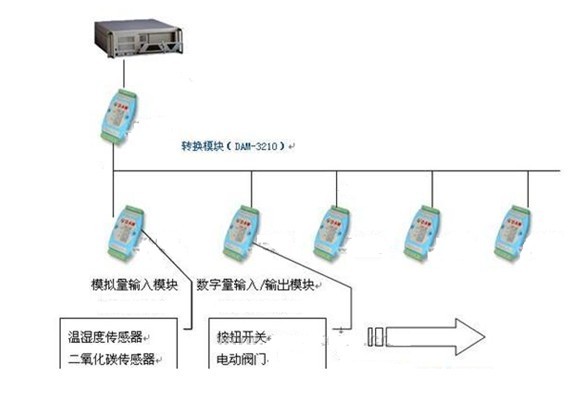 這些均通過(guò)阿爾泰DAM系列485模塊實(shí)現(xiàn)測(cè)量和控制,信號(hào)通過(guò)485通信協(xié)議線路直接與遠(yuǎn)程主機(jī)相連。