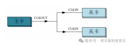1.將主卡的時(shí)鐘輸出信號(hào)連接到從卡的時(shí)鐘輸入端。