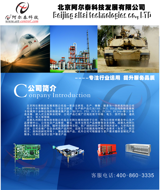 阿爾泰科技一直長期致力于工控行業(yè)。公司涵括數(shù)據(jù)采集卡,無線傳輸,信號(hào)調(diào)理,嵌入式產(chǎn)品,分布式采集產(chǎn)品,工控機(jī),平板電腦及系統(tǒng)等多個(gè)產(chǎn)品領(lǐng)域的銷售,方案設(shè)計(jì),及技術(shù)支持服務(wù)。為了更大的提升咱們阿爾泰的品牌形象。近期開通了阿爾泰科技的百度貼吧。只要在百度搜索引擎輸入“阿爾泰科技”百度貼吧一下